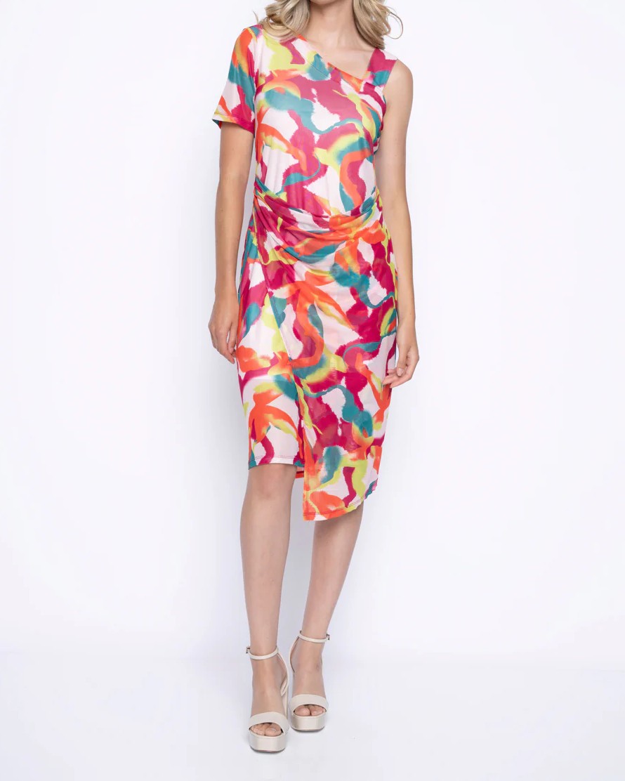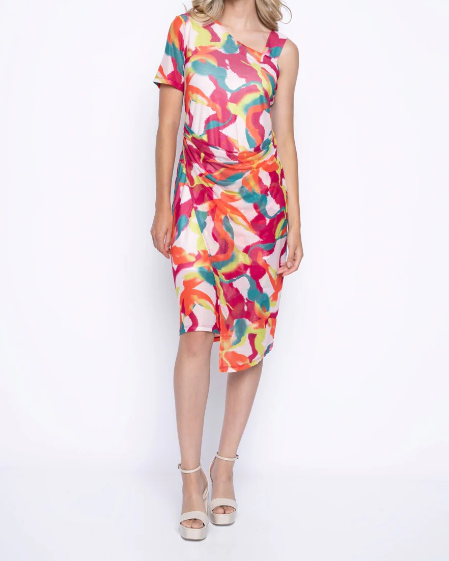 Abstract Print One-Shoulder Mid-Length Dress