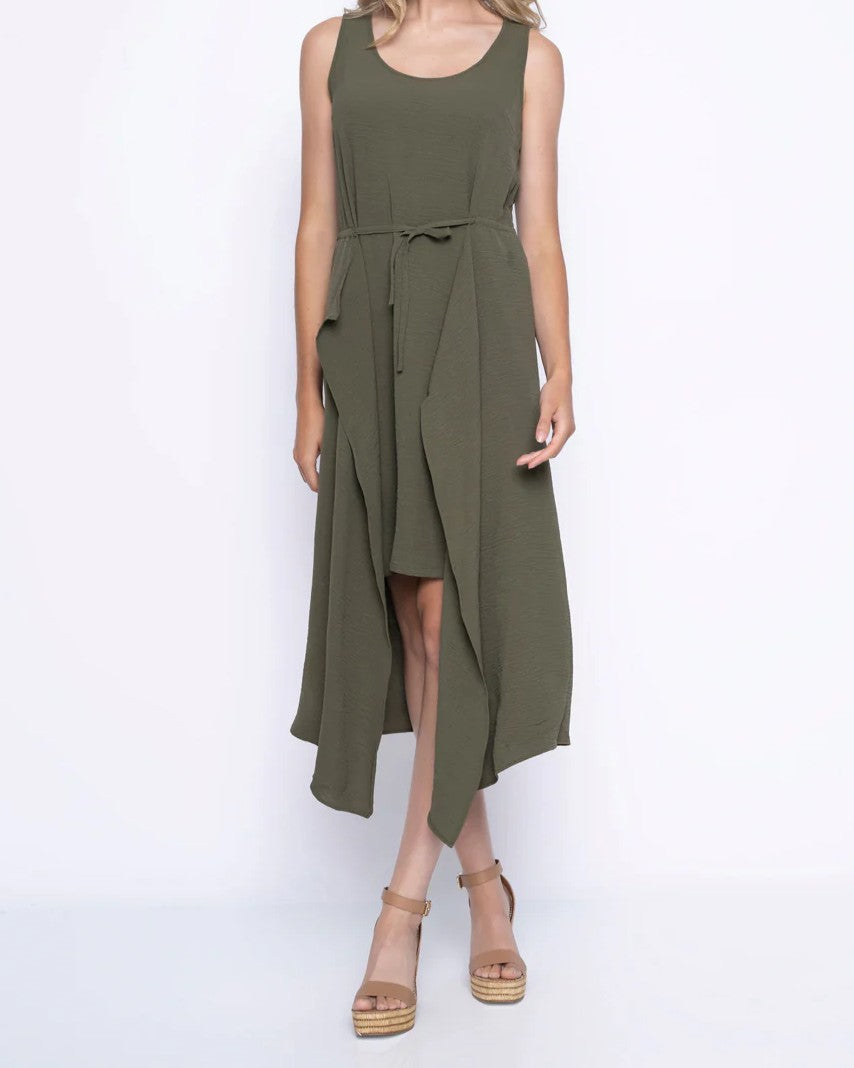 Breezy, beautiful, and oh-so-flattering, this Hi-Low Mid-Length Dress With Drawstring Waist is the perfect mix of elegance and versatility. The drawstring waist embellishment cinches your waist, creating a flattering silhouette that moves effortlessly with every step. Dress it up with heels or keep it casual with strappy sandals—either way, you’ll stun.