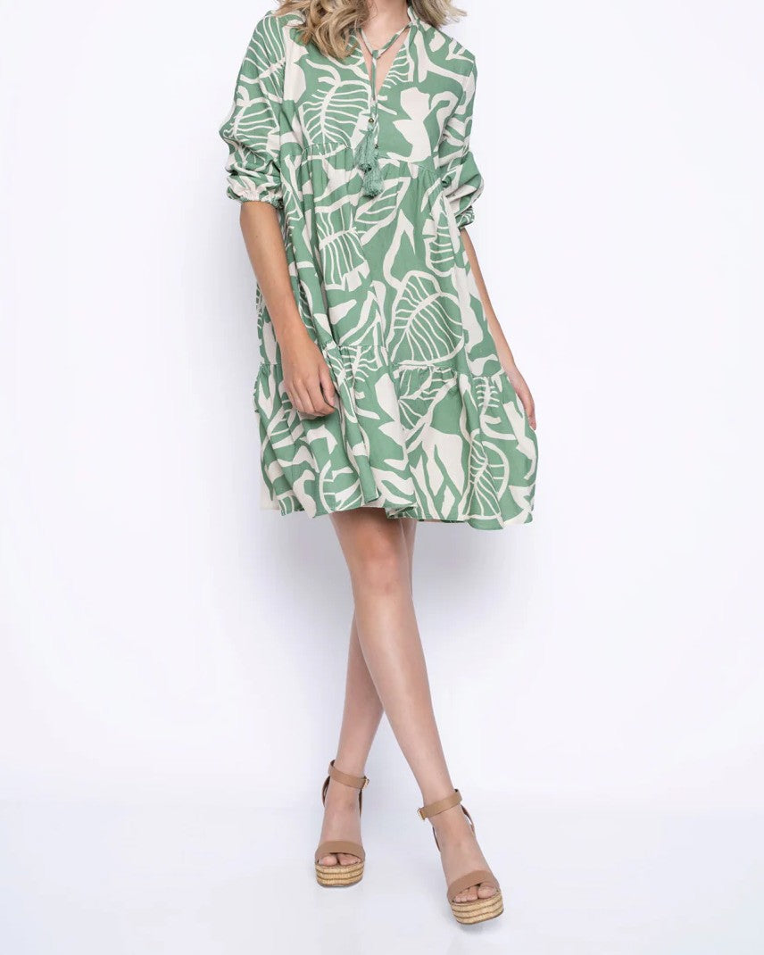 Leaf Print Short-Length Dress